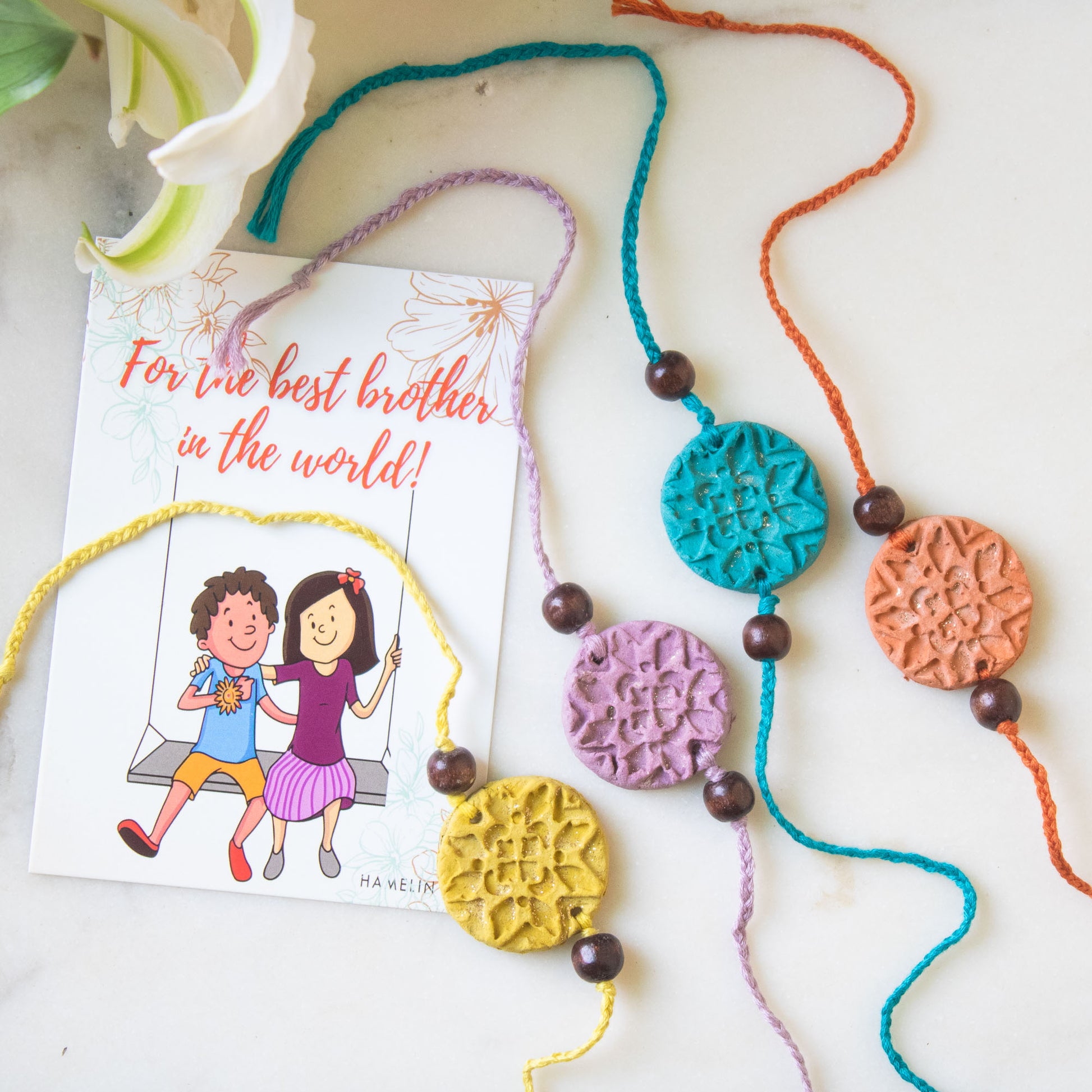With Flo-Rakhi, you are taking one step in forward in the right direction. This unique rakhi is handcrafted using temple flowers and floral dust. It is made with love by the intellectually disabled and under privileged women supported by an NGO Craftizen. Not just that, it can be reused as a fridge magnet, so your wishes dont end up in trash.