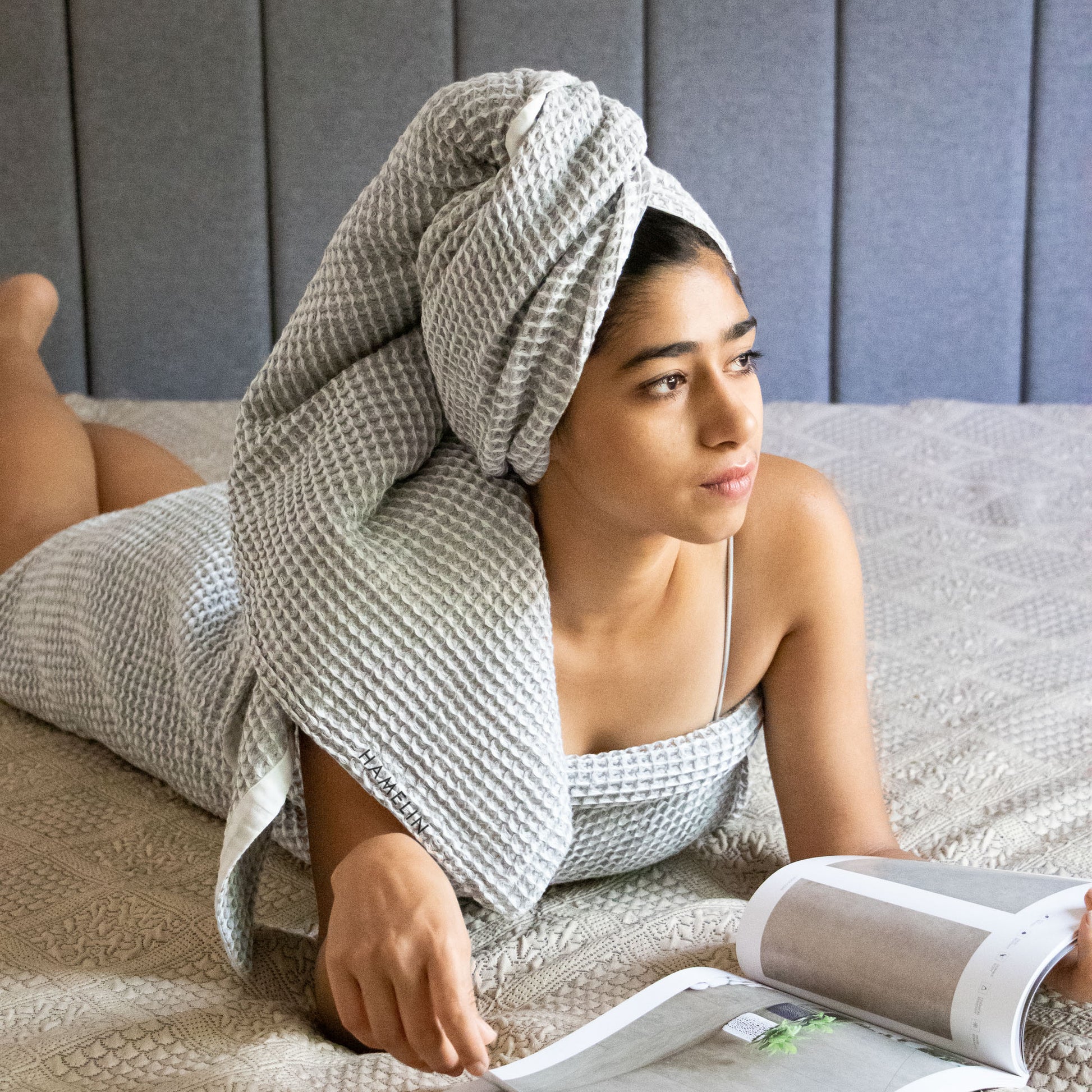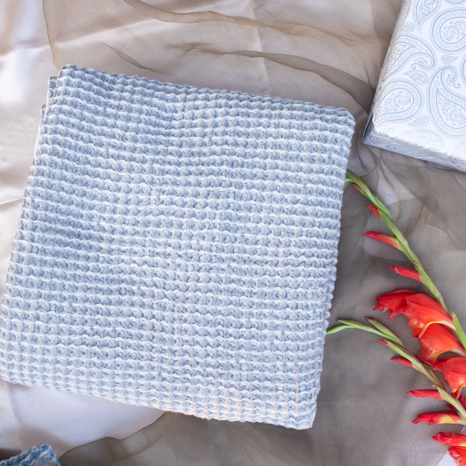 The Ezra bath towels are here to make bathing more relaxing and luxurious. The unique waffle weave makes them highly absorbent and capable of quick drying. Made with 100% cotton sourced from India, these towels are natural and light weight.