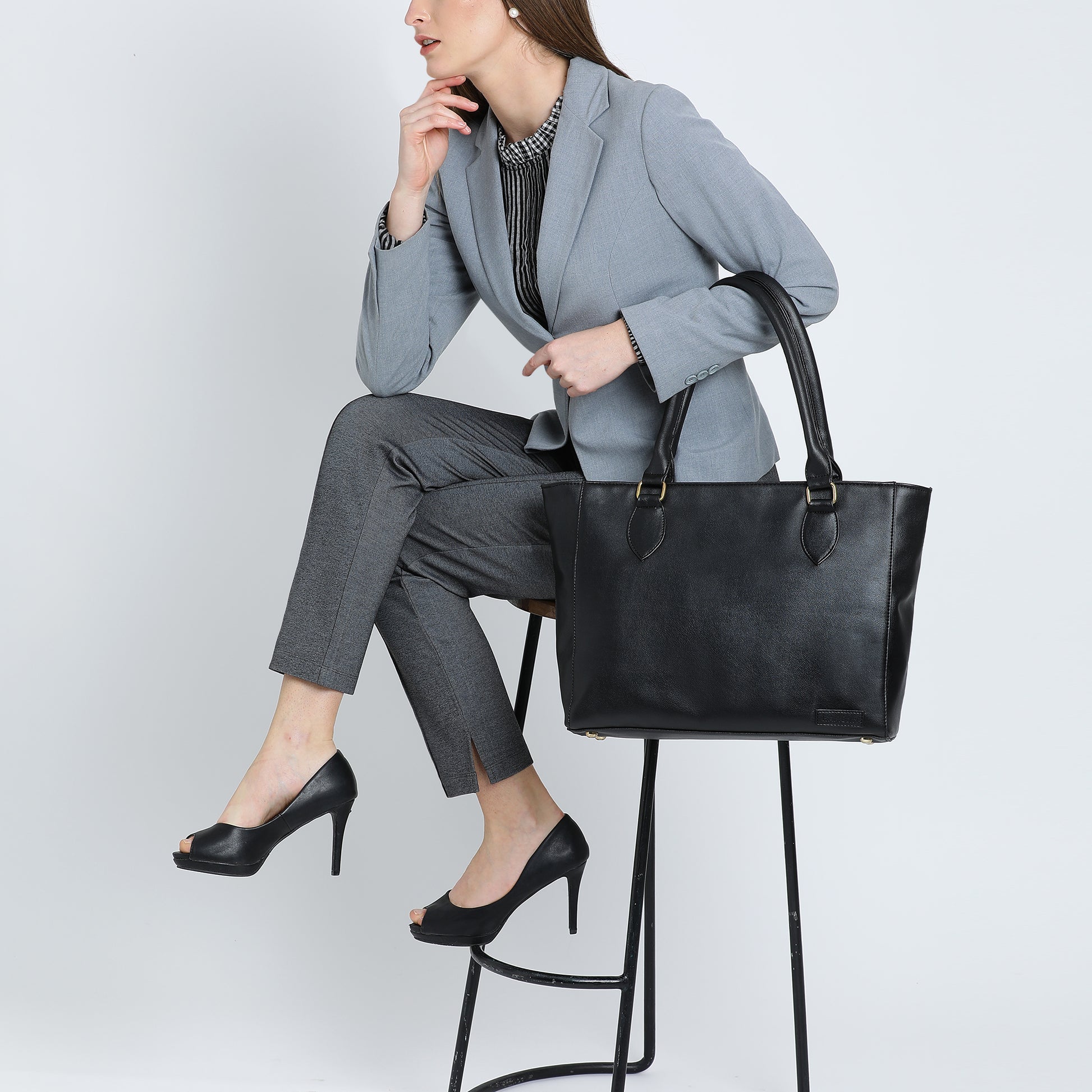 Designed for extended days, the Ultimate Work Tote is the only bag you'll ever need to get through your day. Stylish and spacious, it features a compartment for a laptop(upto 15.6 inch) and several pockets sized purposely for your phones, pen, pendrive, card holder, and lip stick.